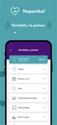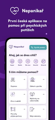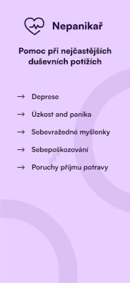 Nepanikař je první česká aplikace pro duševní zdraví. Pomáhá zvládat depresi, úzkost, paniku, sebepoškozování, myšlenky na sebevraždu a poruchy příjmu potravy. Nabízí praktické techniky, dechová cvičení, hry a kontakty na odbornou pomoc.