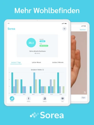 Sorea se neustále vyvíjí, aby vám nabídla ještě komplexnější podporu. V brzké době budete mít prostřednictvím Sorea možnost navázat přímý kontakt s odborníky na lupénku. Tito specialisté vám na základě vašich záznamů poskytnou konkrétní rady a pomohou s celostním zhodnocením vašeho stavu. Navíc v obsáhlé znalostní sekci Sorea naleznete mnoho praktických tipů a triků pro každodenní život s lupénkou. Aplikace Sorea, jejíž technologický vývoj začal koncem roku 2018 za podpory BMWi a v úzké spolupráci s postiženými, Charité Berlin a dalšími klinickými pracovišti, je navržena tak, aby vám poskytla důvěryhodného partnera pro zlepšení kvality vašeho života.