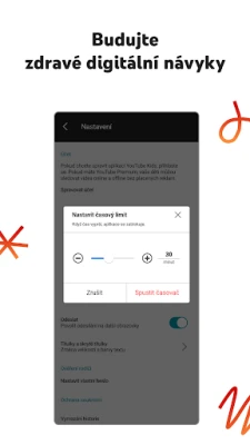 Kromě přizpůsobení obsahu vám YouTube Kids od Google poskytuje i nástroje pro správu času stráveného před obrazovkou. Jednoduchý časovač pomáhá dětem naučit se zdravým digitálním návykům, automaticky pozastaví aplikaci a motivuje je k dalším aktivitám v reálném světě. Snadno také zjistíte, co vaše děti sledují nejraději, díky záložce "Sledovat znovu". Chceme, aby byl každý zážitek pozitivní, a proto máte možnost kdykoli nahlásit nevhodný obsah, pokud by se objevil. Pamatujte, že pro zajištění optimálního prostředí je nezbytné, aby aplikaci nastavil dospělý.