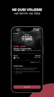 Aplikace Yu Barber myslí na každý detail, abyste se mohli plně soustředit na sebe. Už nikdy nezapomenete na svou rezervaci díky včasným a diskrétním upozorněním, která vás jemně připomenou blížící se návštěvu. Můžete si být jisti, že budete vždy v obraze a s dostatečným předstihem. Těšíme se, až vás budeme moci přivítat v našem salonu a poskytnout vám služby na nejvyšší úrovni, nyní s bezkonkurenčním pohodlím, které vám Yu Barber přináší. Děkujeme, že jste součástí naší komunity a volíte moderní cestu k péči o svůj vzhled.